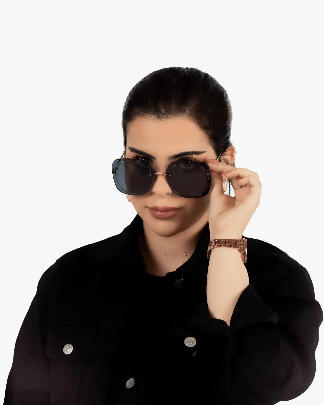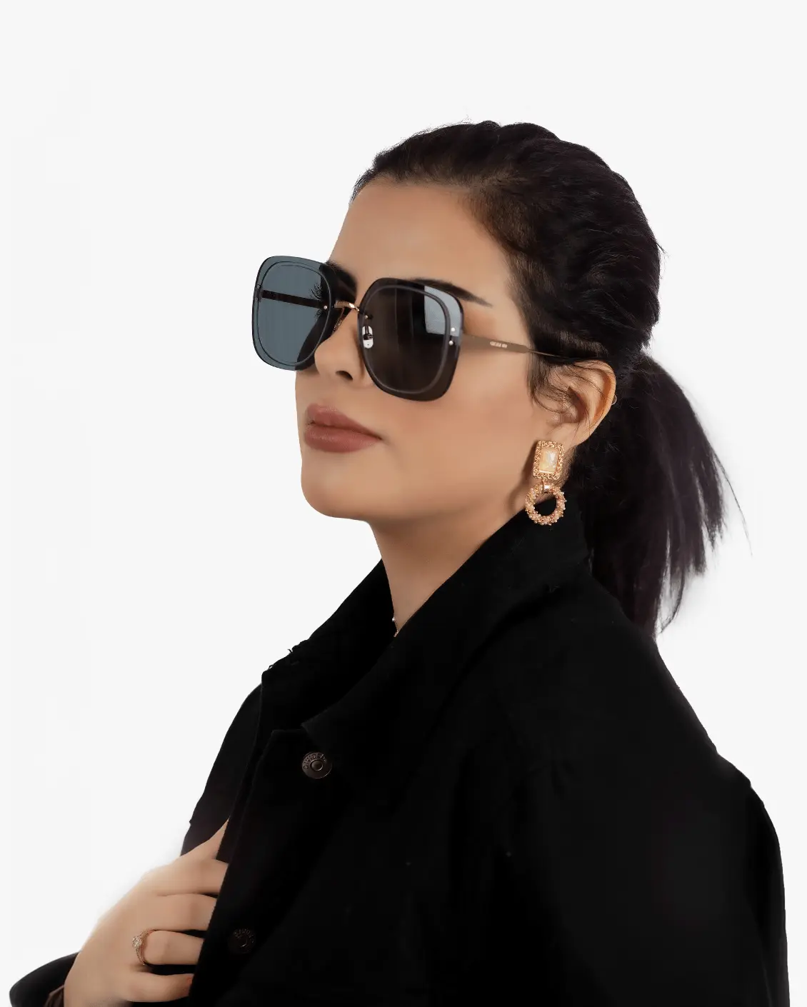 نظارة شمسية بإطار مربع لون ذهبي